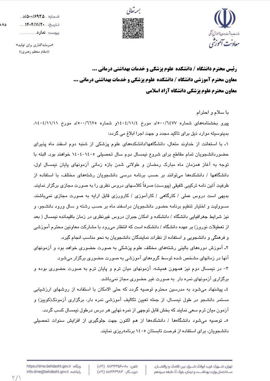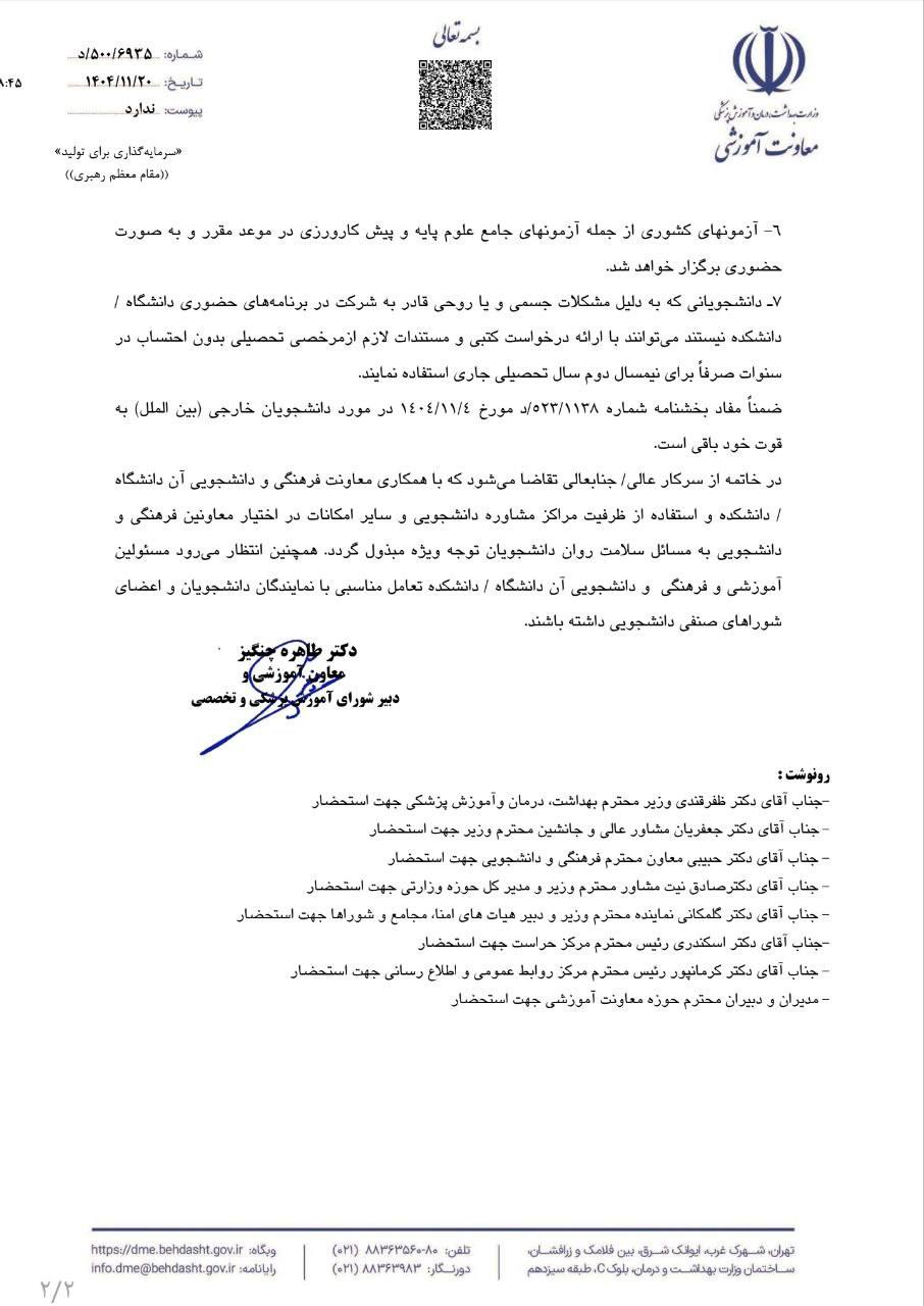 با توجه به نامه رسمی معاونت آموزشی وزارت بهداشت، آزمون طبق برنامه در ۱۴ اسفند برگزار میشه.